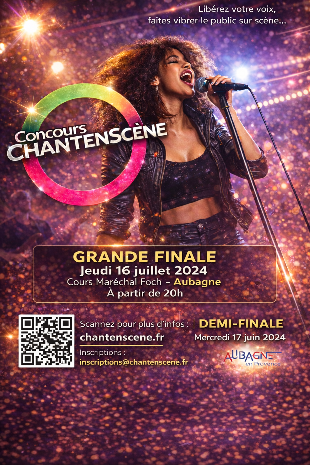 Participe au premier concours de chant live à Aubagne. Sur scène, avec des musiciens et un vrai public.
